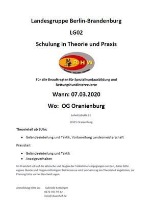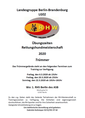 Es besteht die Möglichkeit, dass Teilnehmer der RH-Landesmeisterschaft auf dem Trümmergelände des ASB Berlin üben können. Nähere Informationen erhält man, wenn das nachfolgende Bild angeklickt wird.