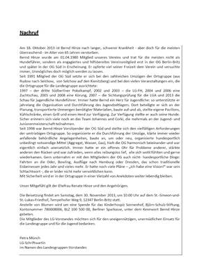 Am 17.11.2013 fand bei angenehmen Spätherbstwetter unsere diesjährige Landesgruppen-Zuchtschau für jugendliche Hundeführer statt. Ein ausführlicher Bericht folgt. Im Anschluss die Ergebnisse, verbunden mit einem Dankeschön an alle Jugendlichen und…